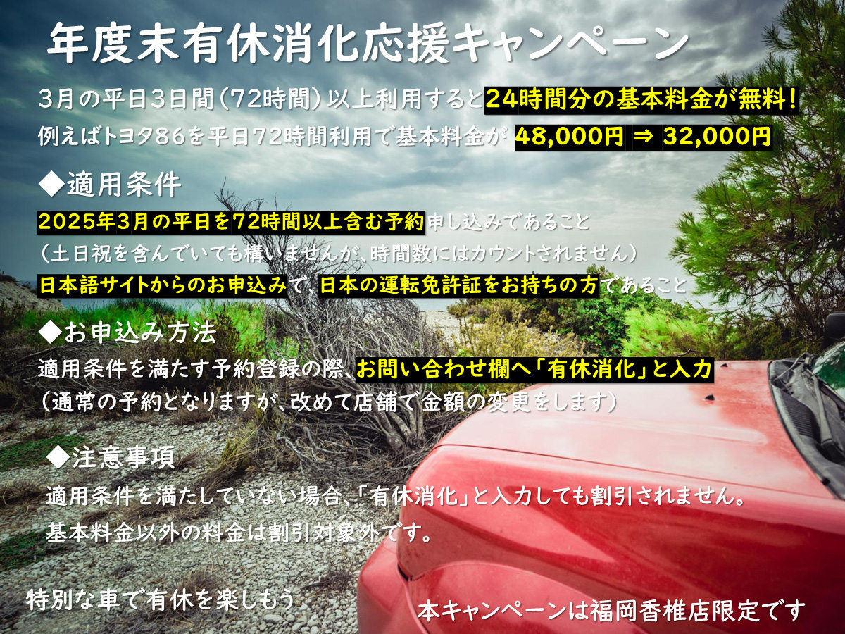 【福岡香椎店】◆◇年度末有休消化応援キャンペーン◇◆