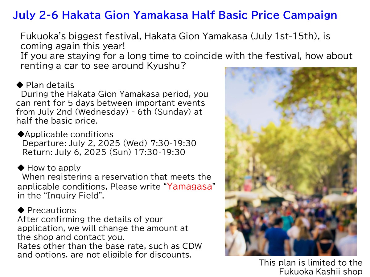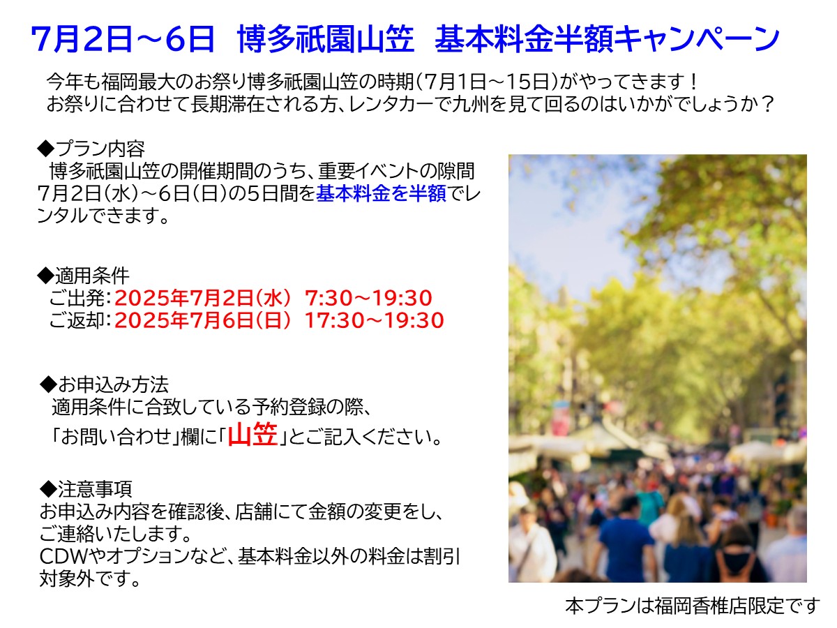 【福岡香椎店】◆◇7月2日~6日 博多祇園山笠 基本料金半額キャンペーン◇◆