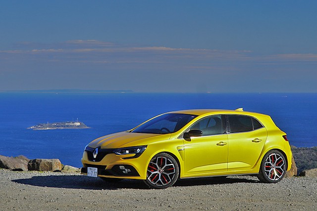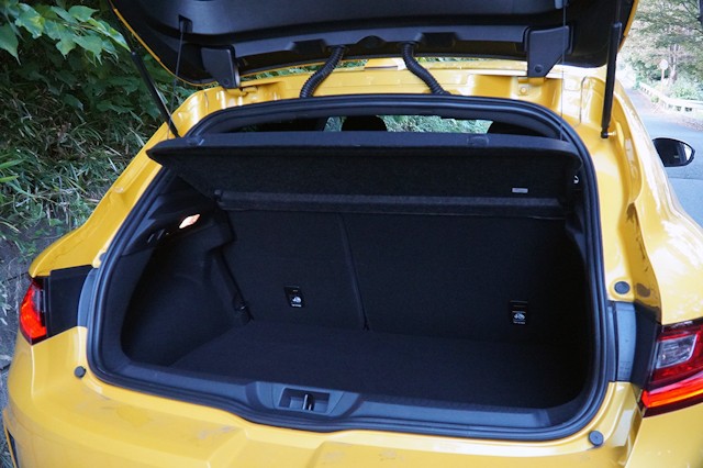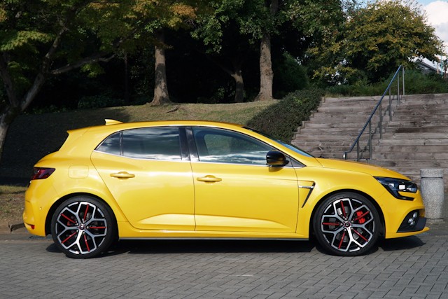 こちらは2020年登録のトロフィー 6速マニュアル車となります。従来型より最高出力を21PS増の300PSへ、最大トルクを30N・m増の420N・mへとアップしている。単にブースト圧を高めただけではなく、メガーヌR.S.のボールベアリングタービンに対して、よりレスポンスに優れるセラミックボールベアリングタービンに変更。サスペンションはノーマルの“シャシースポール”に対して、“シャシーカップ”を採用する。スプリングレートはフロントが23%、リアが35%も高められ、アンチロールバーは7%ハードなものに。ダンパー減衰力は25%増という、かなり締め上げられた仕様。
